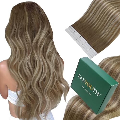 Easyouth Balayage tejpa på-hårförlängningar mänskligt hår brun till blond ombre tejp i förlängningar äkta hår 40 g 20 st 35 cm osynlig tejp i mänskligt hår