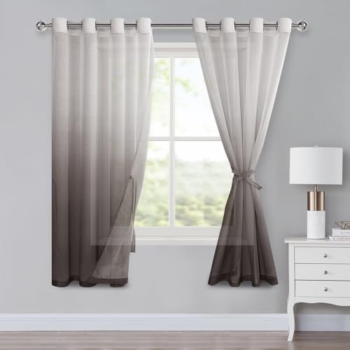 XWZO Voile gardiner med öljetter, gardiner, färggradient, gardin, ombre, gardiner, set om 2 för sovrum och vardagsrum, öljettgardiner med gardinomtag H 175 x 140 cm, kaffebrun