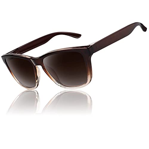 LINVO Polariserade solglasögon herr dam klar ram designer UV400 skydd körning, 1 Ombre brun ram/gradient brun lins, M