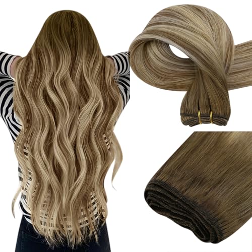 Easyouth Bruna vävda hårförlängningar äkta mänskligt ombre väv mänskligt hår förlängningar brun till medium blond och blond sy in med mjuk och slät textur 35 cm 70 g