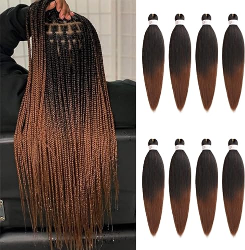 Xtrend 8-pack 50 cm (20 tum) ombre brun EZ fläta hårförlängningar pre stretch för boxflätor Yaki rak kanekalon fiber pre stretch krok och hårförlängningar T30#