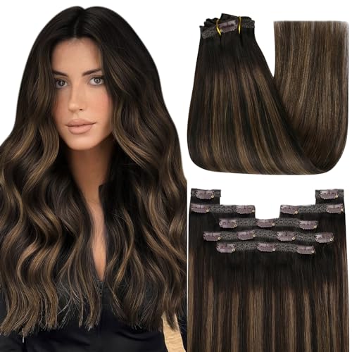 YoungSee Brown Ombre Clip in mänskliga hårförlängningar Mörkaste Brun Balayage Medium Brown Clip in mänskliga hårförlängningar Brun Människohår Förlängning Clip in Ombre Double Wefts 50cm 120g 7st #2/2/6