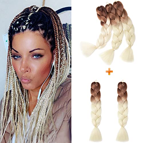 Gairyan Afrikanska flätor, förlängningar för afroflätor, falskt hår, 60 cm, ombre, kanekalon, 5 stycken, flätat syntetiskt hår, virkad twist, jumbo braids(brun-beige)