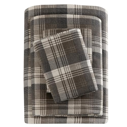Azores Home Bomulls flanell queen påslakanset, överdimensionerad, skrynkelbeständig, mjuk beröring, inkluderar ett påslakan och två örngott med örngott, 170 GSM, Brentwood pläd/brun