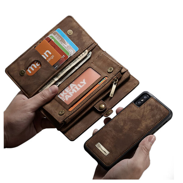 Lux-Case CASEME iPhone Xs Max mobilfodral delad läder plast plånbok dragkedja vintage Brun