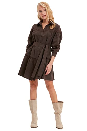 Trendyol Dam brun Belted spets Detailed skjorta casual klänning, 34
