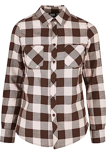 Urban Classics Dam dam överdimensionerad kontroll flanell skjorta casual klänning, rosa/brun, M, Rosa/brun, M
