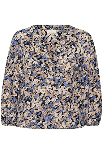 KAFFE dam blus lång ärm skjorta slips hals tryckt, Svart/brun/stor blomma, 42