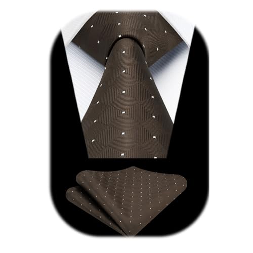 Enlision rutiga slipsar för män formell bröllop slips ficka fyrkantig business slips & näsduk set, Brun, en storlek