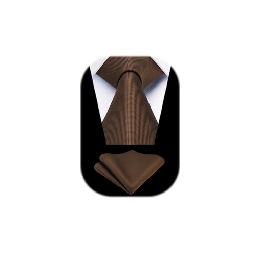 Enlision mäns solid slips och ficknäsduk set klassiska bröllopsband för män formella affärer slipsar näsduk present, Brun, en storlek