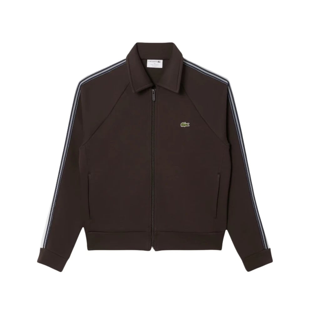 Lacoste, Sweatshirts & Hoodies , Herr, S, Läder, Brun Zip-Up Sweatshirt Tillverkad i Frankrike