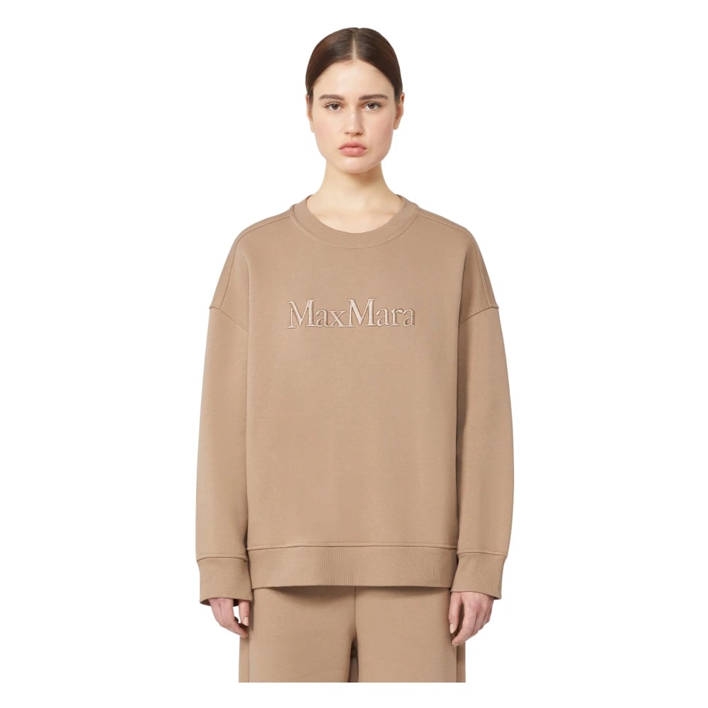 Max Mara, Sweatshirts & Hoodies , Dam, M, Bomull, Brun Crew Neck Sweatshirt med Logo