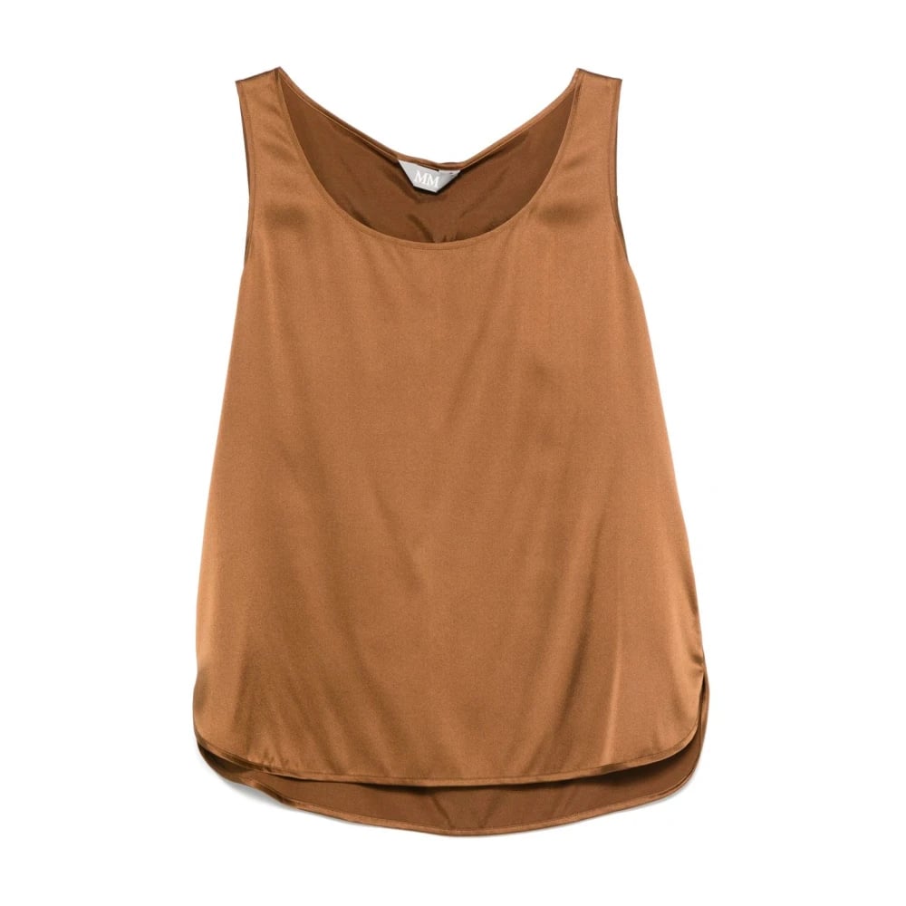 Sportmax, Toppar , Dam, L, Brun Ärmlös Topp med Ståkrage
