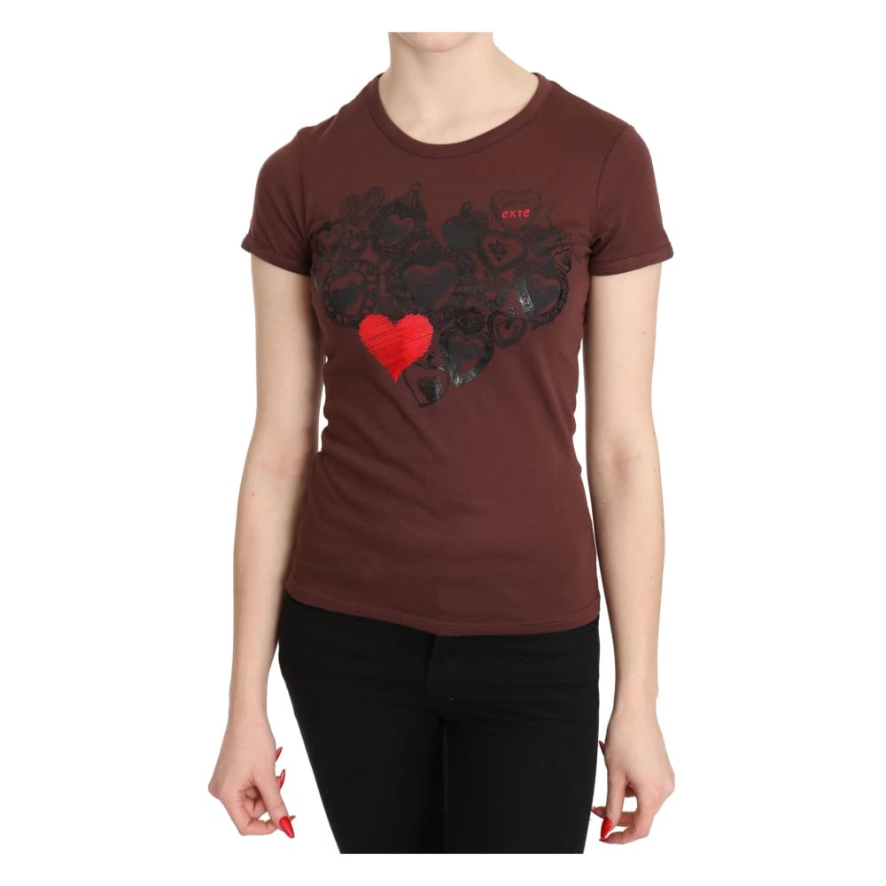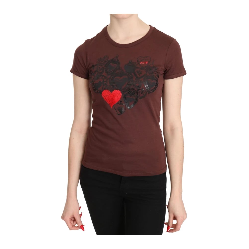 Exte, Toppar , Dam, S, Bomull, Brun Hjärttryck Kortärmad Topp