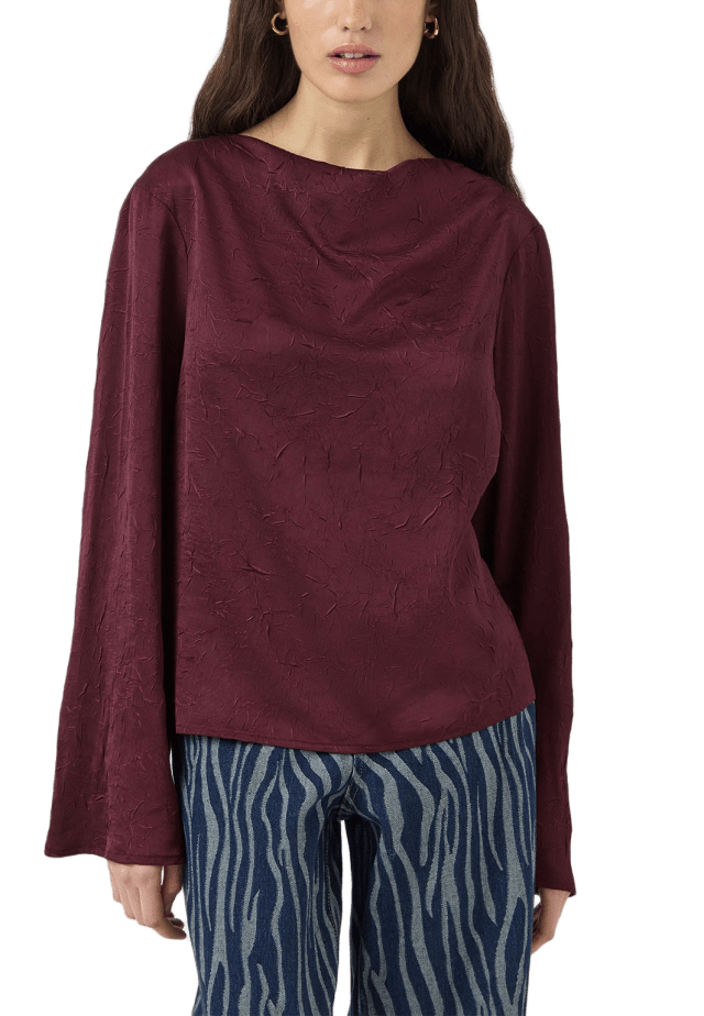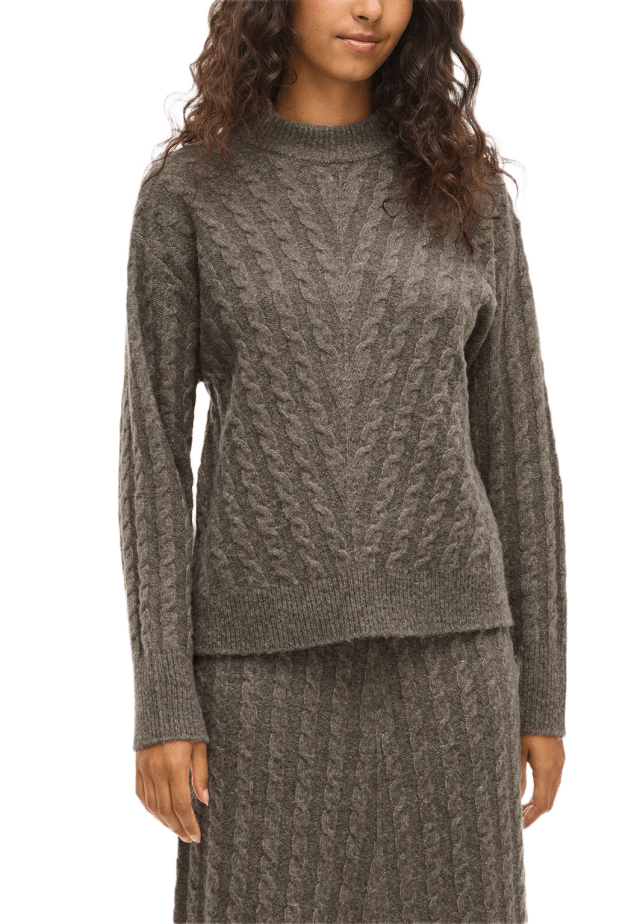 Långärmad Topp Med Öppna Axlar Grå Brun