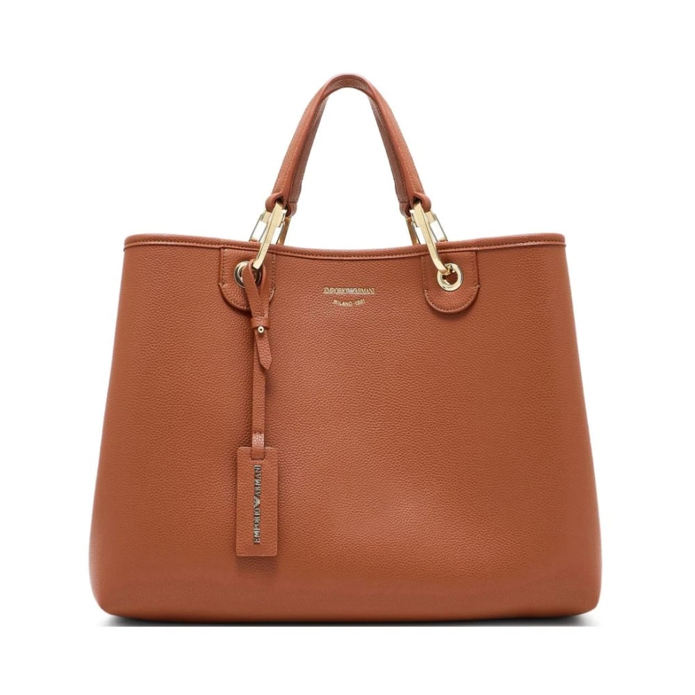 Emporio Armani, Väskor , Dam, ONE Size, Läder, Brun Läder Topp Handtag Axelväska