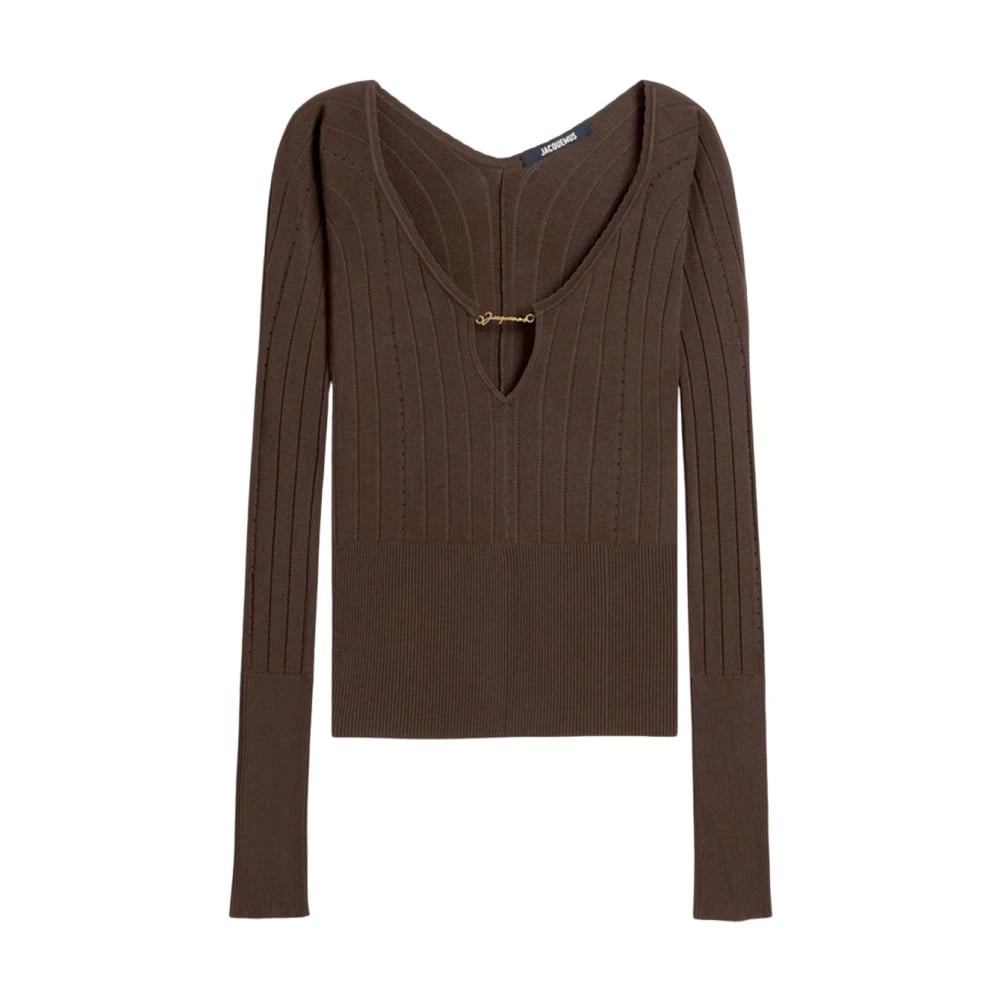 Jacquemus, Stickade Tröjor , Dam, M, Brun Ribbstickad Topp