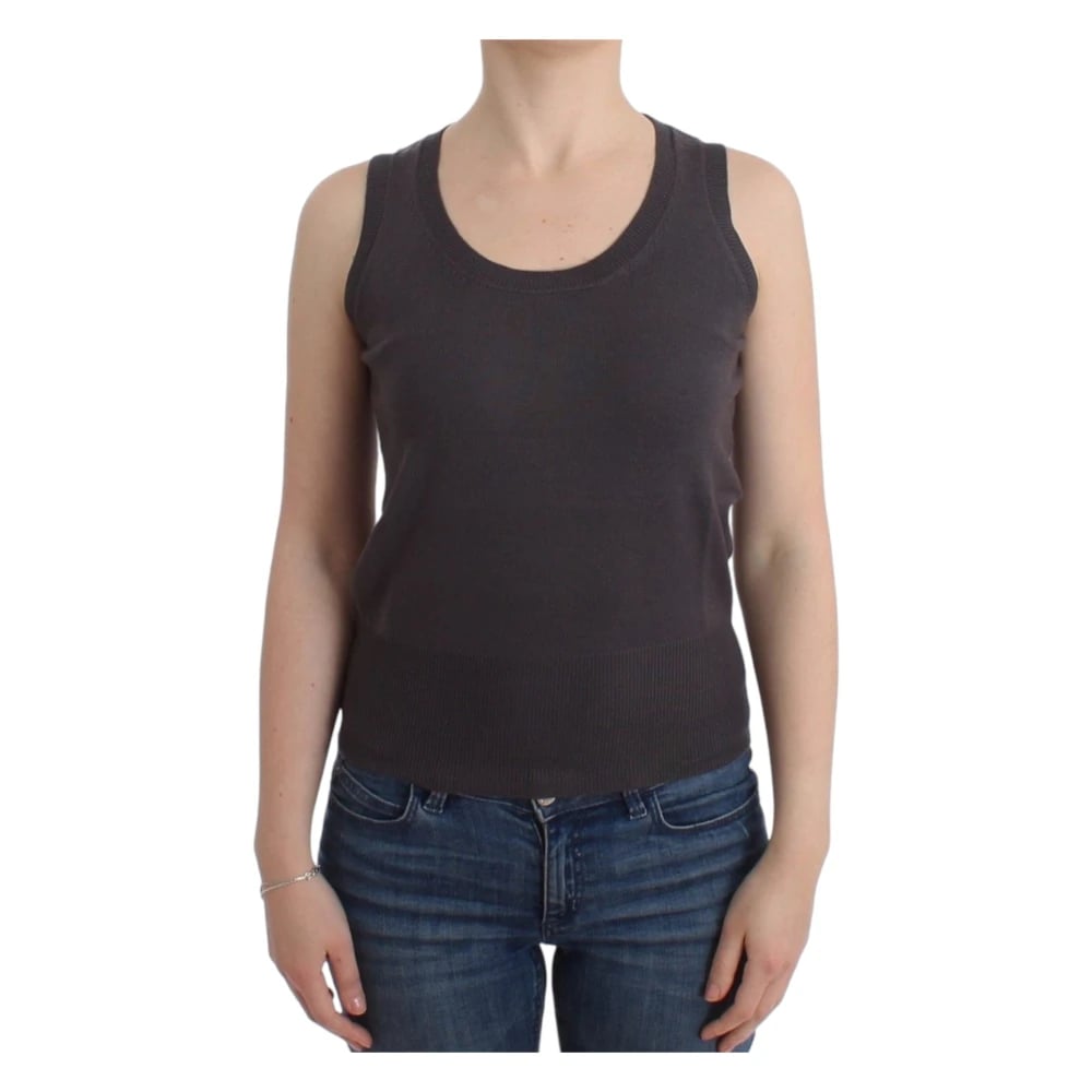 John Galliano, Toppar , Dam, S, Ärmlös Brun Stickad Topp