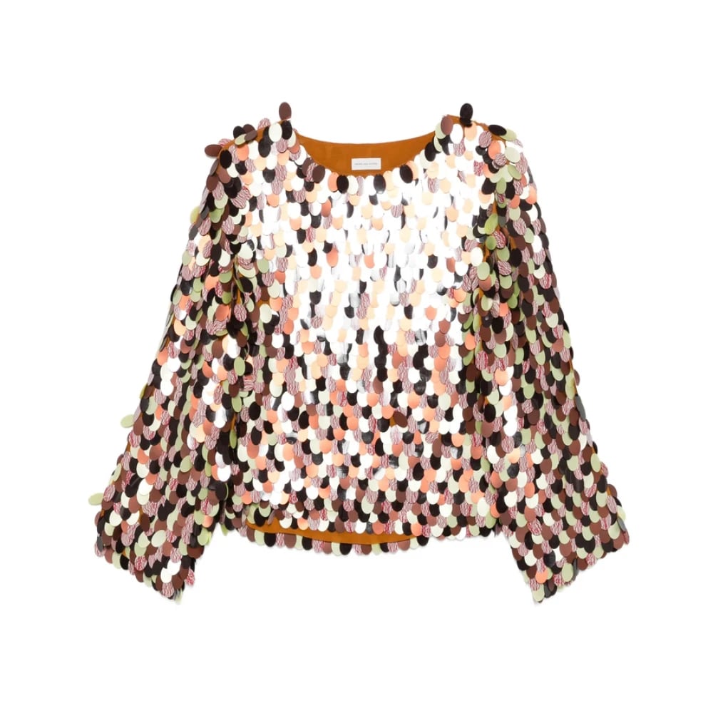 Dries Van Noten, Blusar & Skjortor , Dam, S, Brun Paljettdekorerad Kort Topp