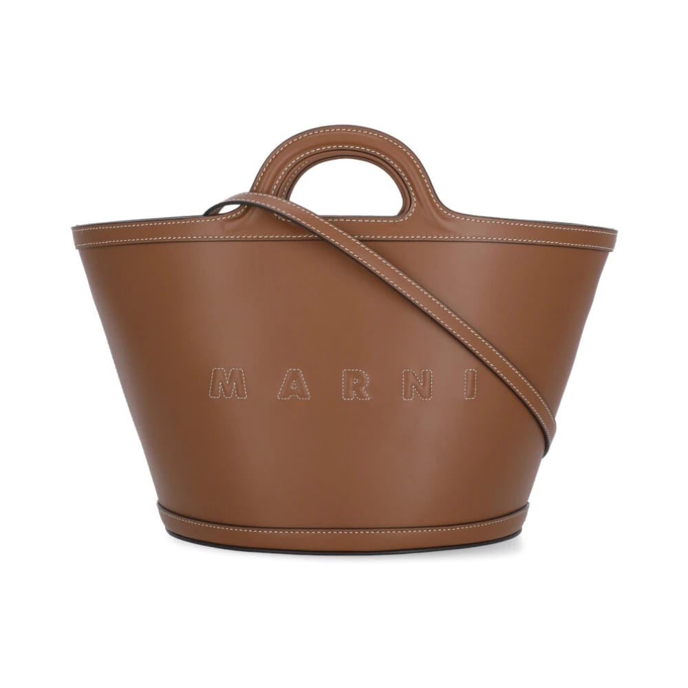 Marni, Väskor , Dam, ONE Size, Läder, Brun Läder Tote Bag