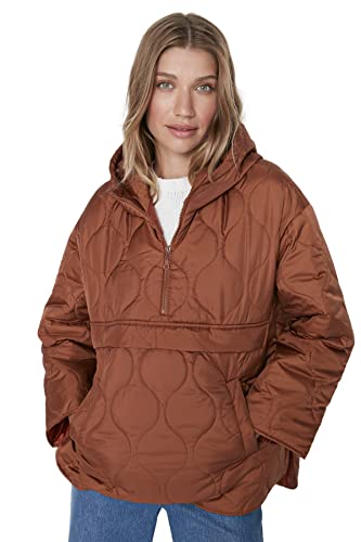 Trendyol Dam långärmad huva vinterjacka – puffert, Brun, XS