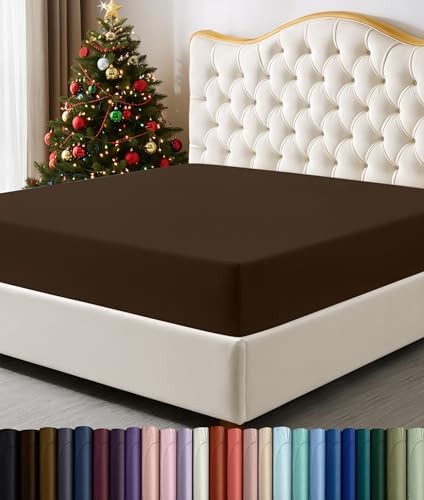 Utopia Bedding Queen dra-på-lakan – bottenlakan – djup ficka – mjuk mikrofiber – krympnings- och blekningsbeständig – enkel skötsel – endast 1 dra-på-lakan (brun)