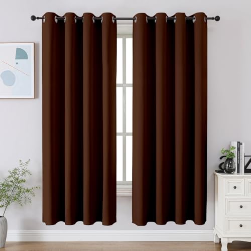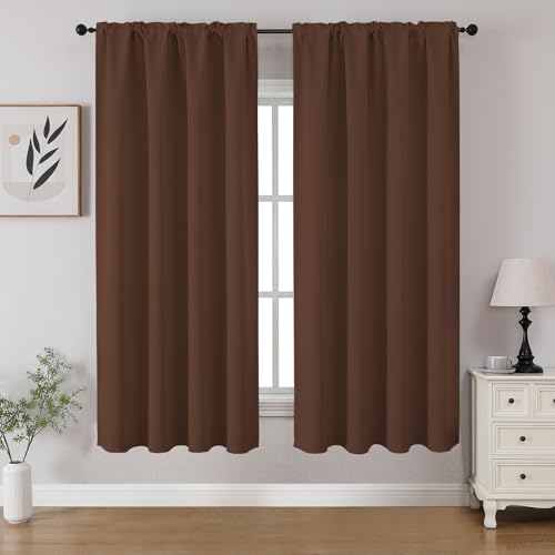 CUCRAF Mörkläggningsgardiner 115 cm längd, värmeisolerade mörkläggningsgardiner för rum, för sovrum, ljusblockerande draperier för kök vardagsrum, set med 2 paneler, 132 x 115 cm, brun