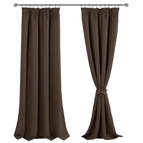 CUCRAF Mörkläggningsgardiner mörkläggningsgardiner för rum, gardinpaneler, stångficka värmeisolerade solida draperier för sovrum vardagsrum, set med 2 paneler. 132 x 160 cm, brun