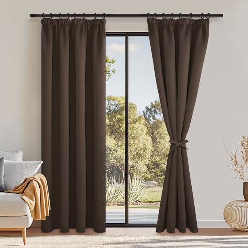 DWCN Mörkläggningsgardiner för sovrum värmeisolerat rum mörkläggningsgardiner penna veck fönstergardiner för vardagsrum 117 x 228 cm längd, brun, 2 paneler
