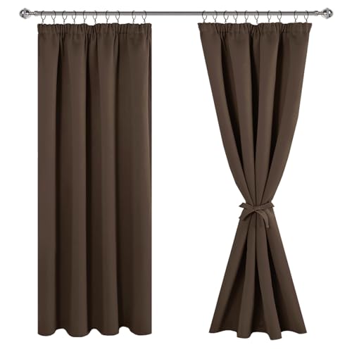 CUCRAF Mörkläggningsgardiner mörkläggningsgardiner för rum, gardinpaneler, stångficka värmeisolerade solida draperier för sovrum vardagsrum, set med 2 paneler. 132 x 213 cm, brun