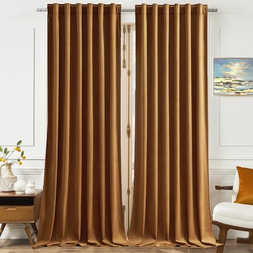 Frodig dekor Prima sammetsgardiner färgblock rum mörkläggningsgardiner fönsterpanel set för vardagsrum matsal sovrum (par), 213 cm L, rost