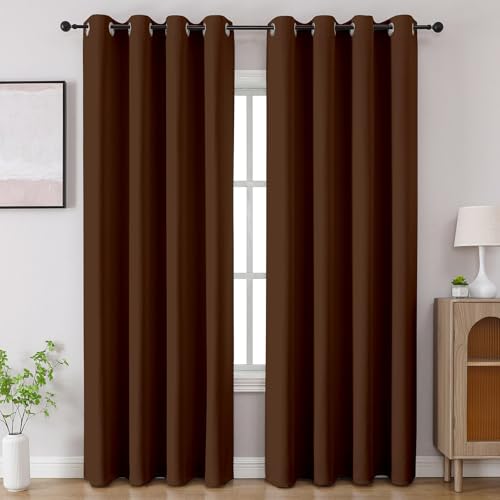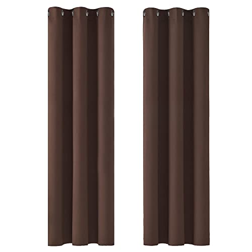 Deconovo Mörkläggningsgardiner, ogenomskinliga öljettgardiner, 160 x 107 cm (längd x bredd), mörkbrun, set om 2