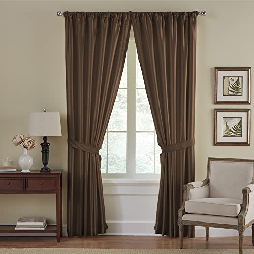 Elrene Home Fashions Versailles mörkläggningsgardiner i fusksiden, gardinpanel, mörkläggningsgardin med stångficka, 132 cm x 274 cm (52 x 108 tum), chokladbrun, 1 panel