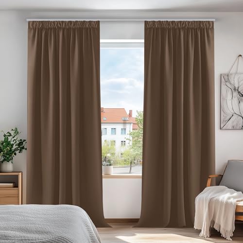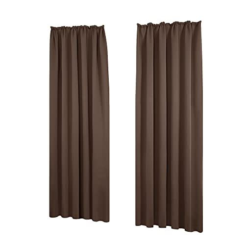 Joydeco Mörkläggningsgardiner 2 cm längd, 2 paneluppsättning, värmeisolerade långa gardiner och draperier 2 burg, mörkläggningsgardiner för rum för vardagsrum sovrum fönster (B 132 x L 250 cm, brun)