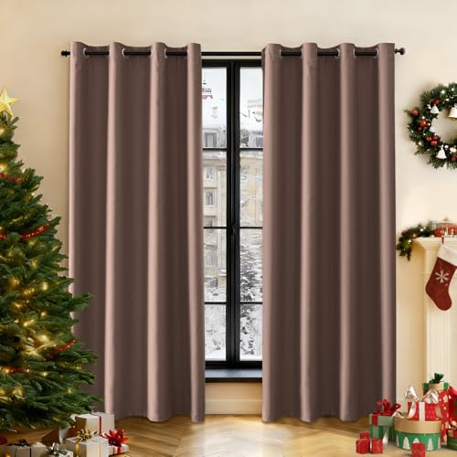 CUCRAF Mörkläggningsgardiner mörkläggningsgardiner för rum, gardinpaneler, stångficka värmeisolerade solida draperier för sovrum vardagsrum, set med 2 paneler. 132 x 241 cm, brun