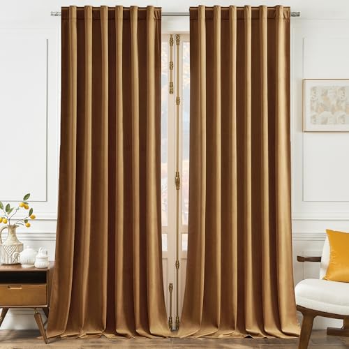 Lazzzy sammet mörkläggningsgardiner bruna termiska isolerade draperier för sovrum vardagsrum mörkläggning 258 cm extra långa fönsterbehandlingar supermjuka lyxiga stavfickor 2 paneler guldbrun