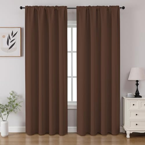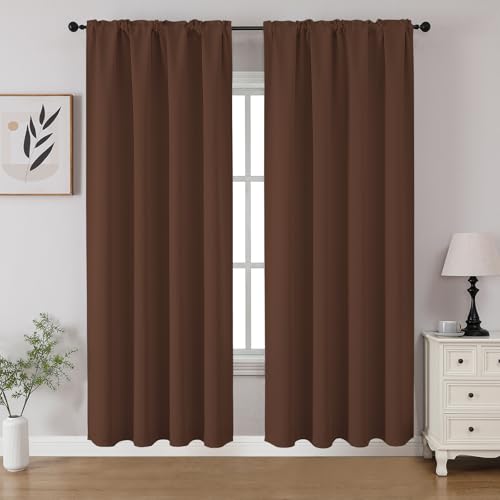 CUCRAF Mörkläggningsgardiner mörkläggningsgardiner för rum, gardinpaneler, stångficka värmeisolerade solida draperier för sovrum vardagsrum, set med 2 paneler. 132 x 183 cm, brun