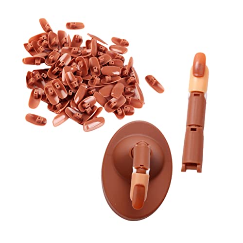 Nagelövningsfingrar för Akrylnaglar, 3 Naglar för övningshand för Akrylnaglar, Träningsfingrar för Nybörjare med Nagelkonst, med Brun Bas för Naglar