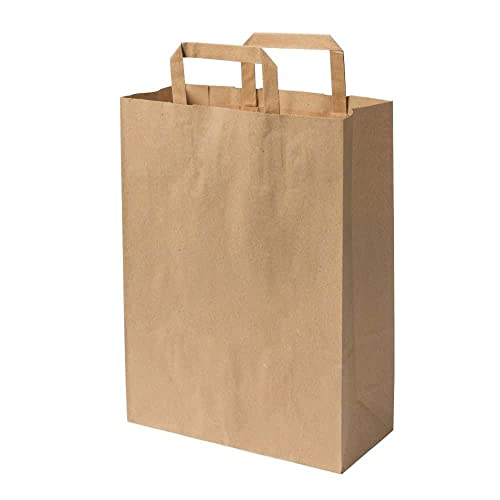 PAKNOR® 50 st bruna papperspåsar med handtag – 18 x 23 x 8,5 cm, pappersbärkasse med platt handtag, presentpåsar, kraftpapperspåse, gör-det-själv-adventskalender