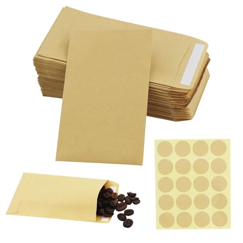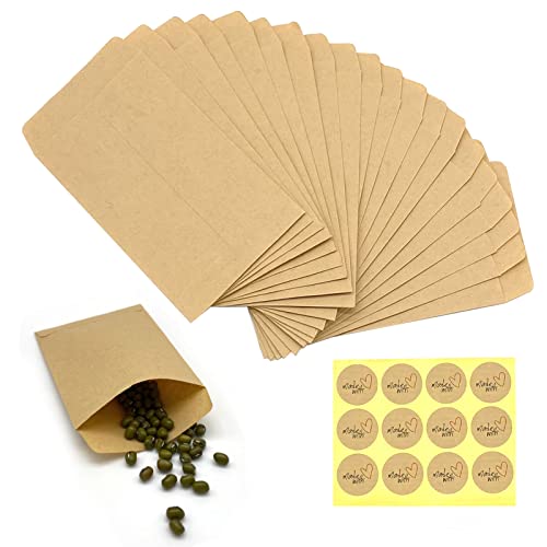 100 st små bruna papperspåsar, fröpåsar 6 x 10 cm med dubbelsidig tejp, kraftpapperspåsar, presentpåsar, kraftpapperspåsar, förpackningspåsar för presentförpackning