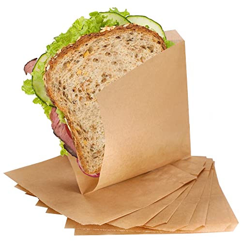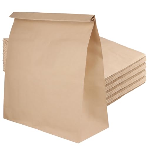 50-pack bruna kraftpapperspåsar, matväskor för bröd, godis, söta papperspåsar, fettsäkra smörgåspåsar för matvaror, mellanmål, lunch, kex, frukt, bageri, smörgåsar (20 x 12,5 x 30,5 cm)