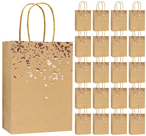 INHEMING 20 presentpåsar av kraftpapper papperspåsar brun med handtag, bronzing kraftväska med hjärtdekoration, party presentpåsar för fester födelsedag bröllop och jul
