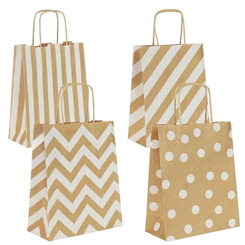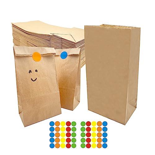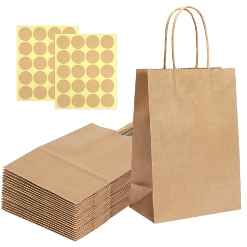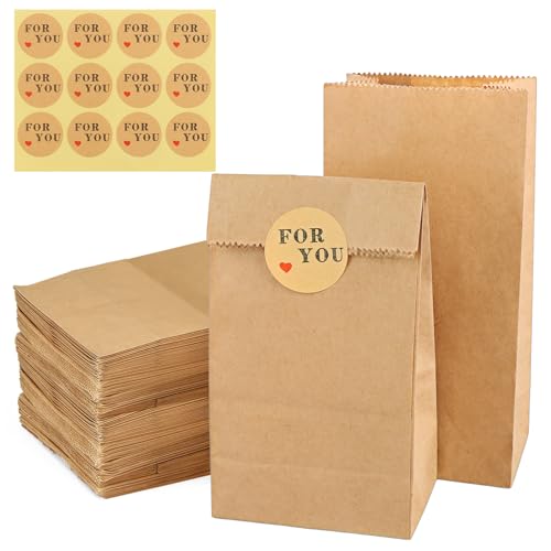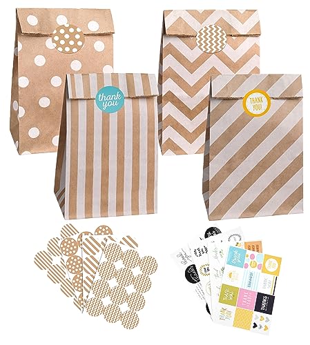 PAKNOR® Bruna papperspåsar, 40 st. presentpåsar av kraftpapper med 96 klistermärken, papperspåse för förpackning av presenter, giveaways, för barnkalas