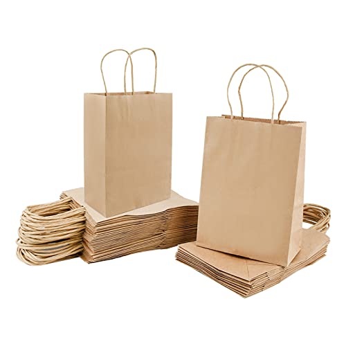CLTPY Papperspåsar med handtag, små bruna kraftpapperspåsar, 15 x 8 x 21 cm, 100 Count, perfekt för fester, bröllop, födelsedagar, examen, halloween, jul