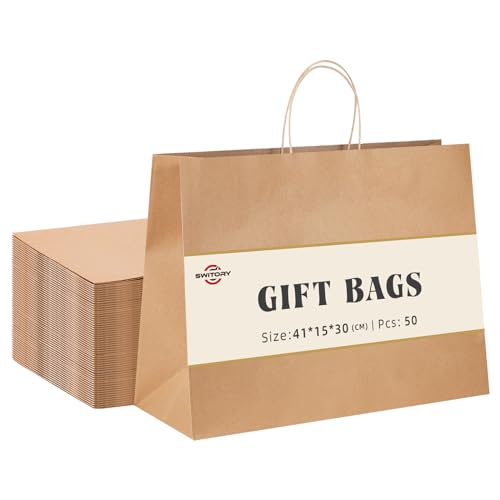 Switory stora presentpåsar, 50 st bruna papperspåsar 40 x 16 x 30 cm festväska med handtag för festgåva, kristen dag, tacksägelsedagen, juldagen