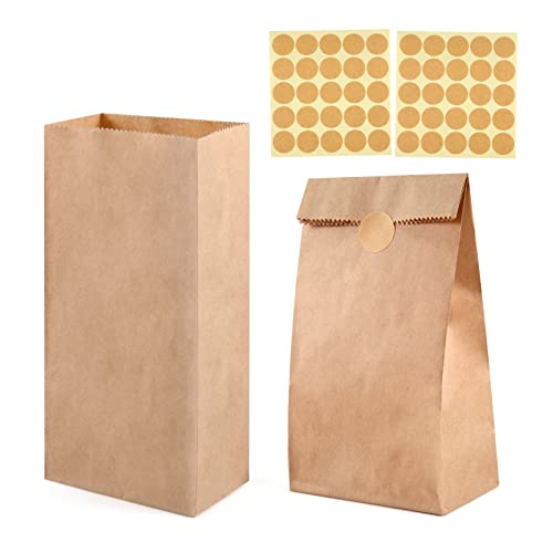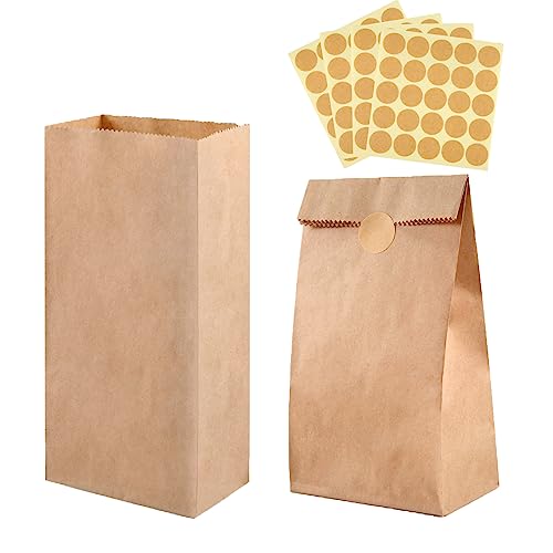 Premium små bruna papperspåsar – 50-pack med handtag och tätningsklistermärke för barnfest