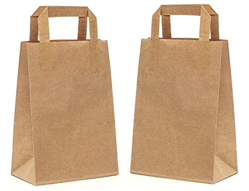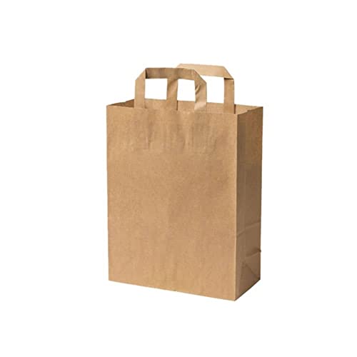 TYFYH 25 st. papperspåsar med handtag, presentpåsar, papperspåsar små, kraftpapperspåsar bruna, shoppingkassar för gåva, restaurang att ta med, shopping (21 x 15 x 8 cm)