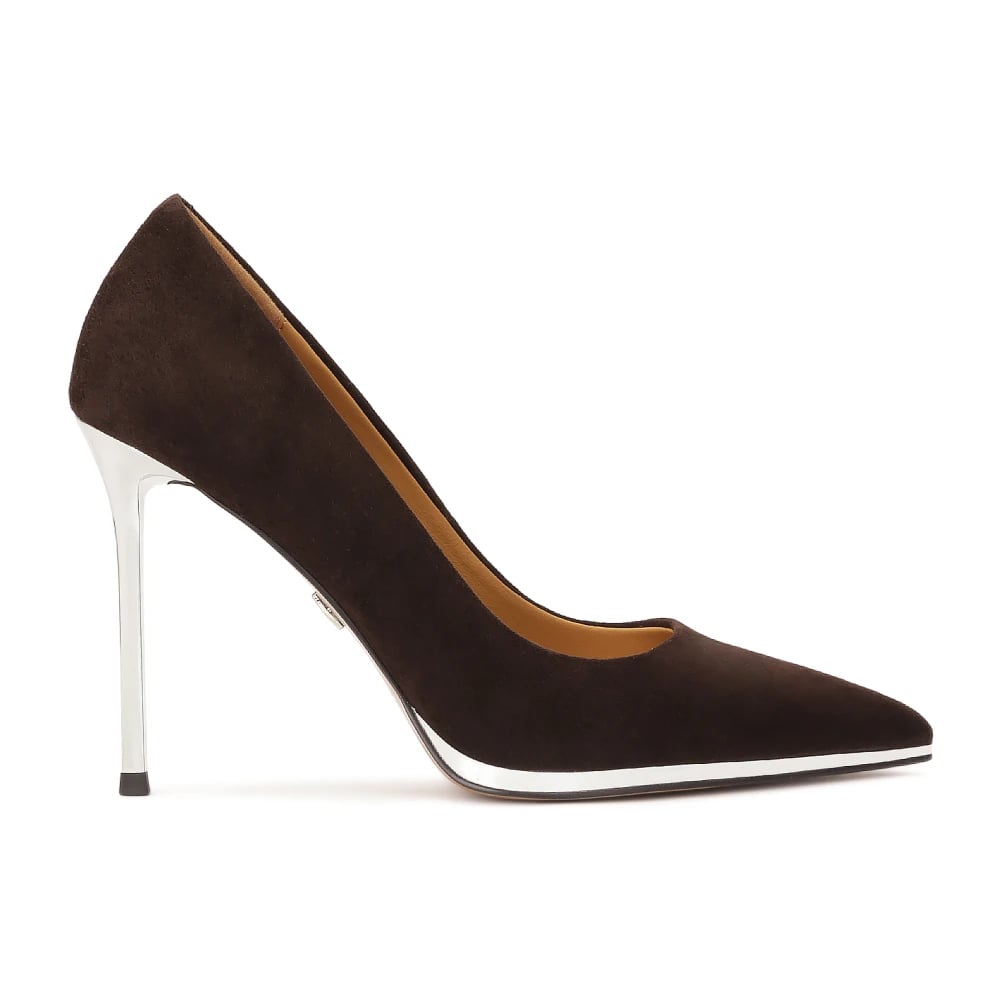 Kazar, Skor , Dam, 41 EU, Läder, Bruna pumps med silverklack
