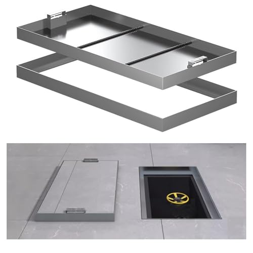 Brunnslock och ram i rostfritt stål, infällt septiktanklock i rostfritt stål, starkt lastbärande osynligt brunnslock for uppfart/motorvägar,(8cm,40 * 40cm/15.7 * 15.7in)