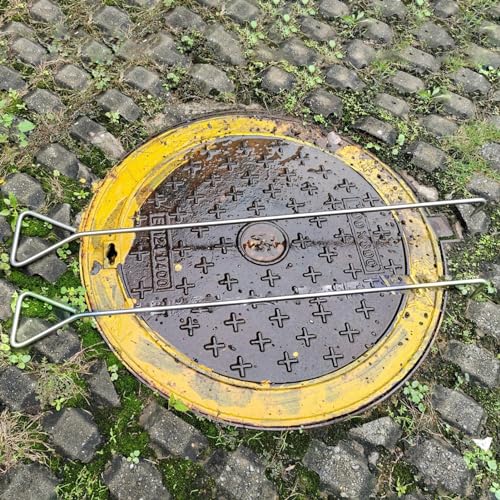 Brunnslock Krok Set med 2 Praktiska Manhålsavdragare med Triangelhandtag, Silver Metall Rörligt Lock Avdragare för Avlopp, Hem Rulljalusi Dörr Krok(50 cm(19 3/4"))